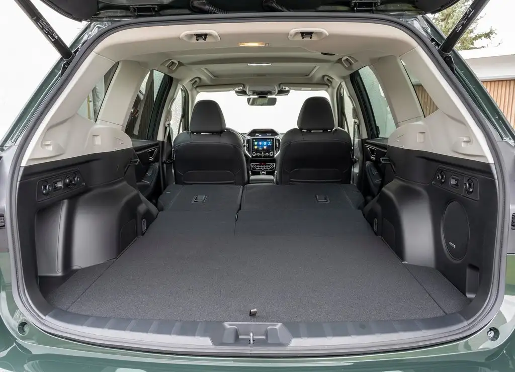 Subaru Forester 2025 cả 3 phiên bản đều có dung tích khoang hành lý 520 lít. Và như đã đề cập ở trên khác biệt duy nhất ở khoang hành lý là chức năng mở cốp điện với độ nhớ cao ở 2 phiên bản Subaru Forester 2025 cao cấp.